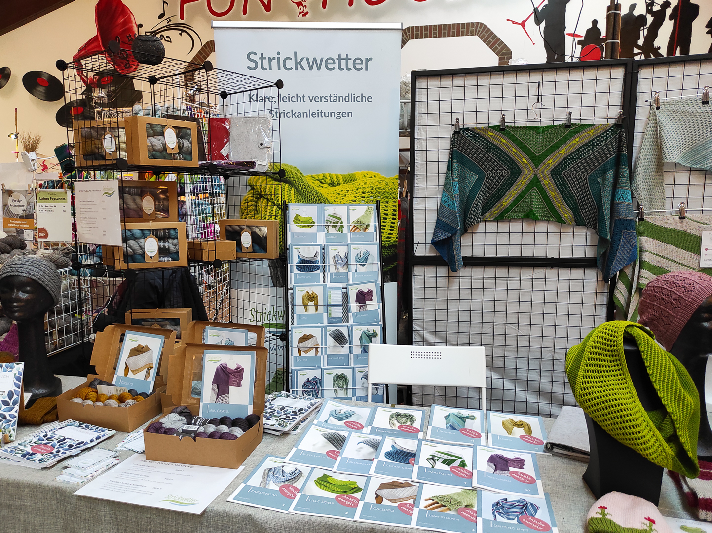 Wir werden wieder die gedruckten Anleitungshefte dabei haben, sowie Stricksets (Wolle + Anleitung) für Callisto, Mrs. Gaskell und Nord & Nordwest und natürlich die beliebten Stricktagebücher.